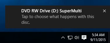 When you first insert a CD/DVD look for this message (above picture) in the bottom right hand of your screen and then click on it.
