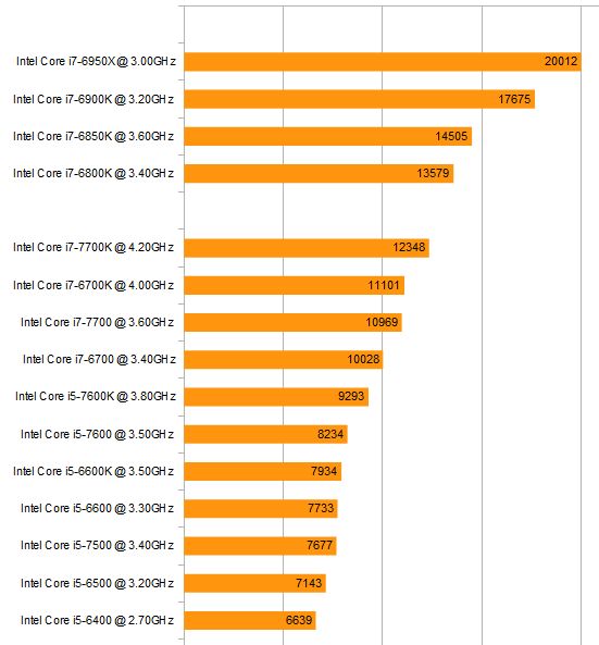 Below is a chart showing the difference in current CPU speeds. The performance is based on the CPU benchmark using Passmark CPU Mark
