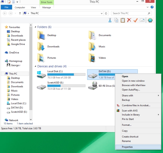 Click on the START BUTTON and then click on THIS PC in Windows 8 or COMPUTER in Windows 7 and then right click on your hard drive and select PROPERTIES as in the above picture.