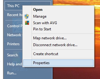 Click on the Start Button and right click on THIS PC (or COMPUTER) and select PROPERTIES
