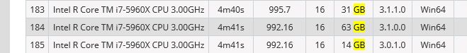 In the above example we have the same i7-5960X CPU with 3 different amounts of available RAM, 14 GB, 31 GB and 63 GB. As you can clearly see a lot more RAM does not increase the performance of rendering.