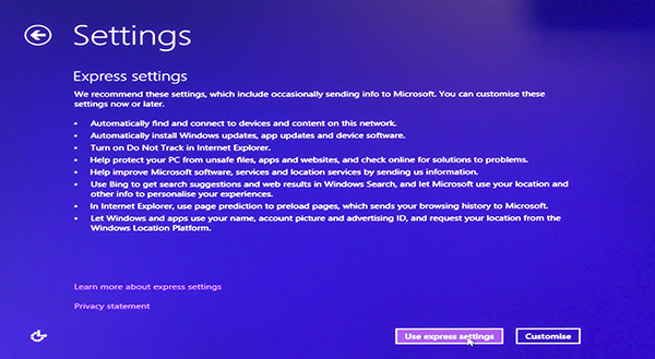 Click on Use Express Settings