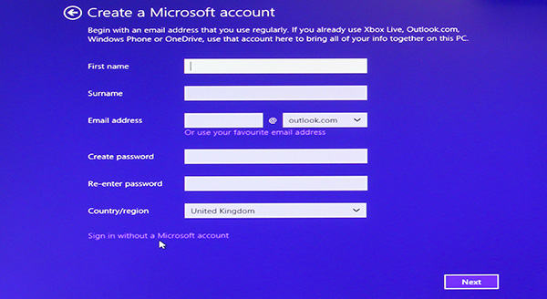 You can now click on SIGN IN WITHOUT A MICROSOFT ACCOUNT to continue