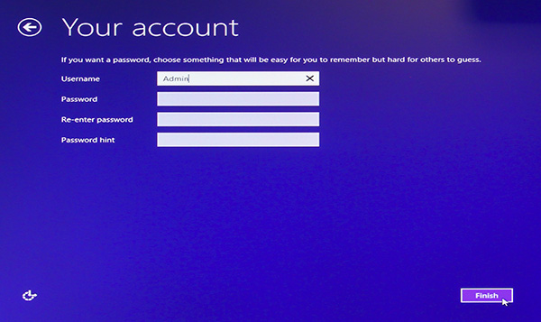 Type in a USERNAME (not the same as the PC Name) and then click on FINISH