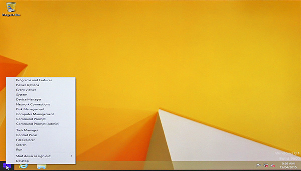 RIGHT CLICK on the Start Button for the Menu. Left clicking will just take you back to the Metro Tile Screen.