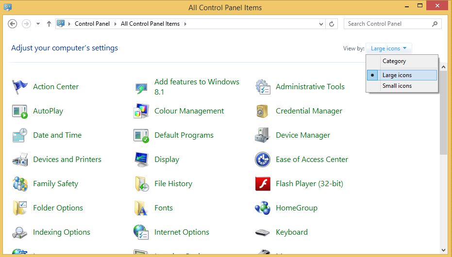 Click on the drop down menu on VIEW BY and select LARGE ICONS and then click on DEVICE MANAGER.